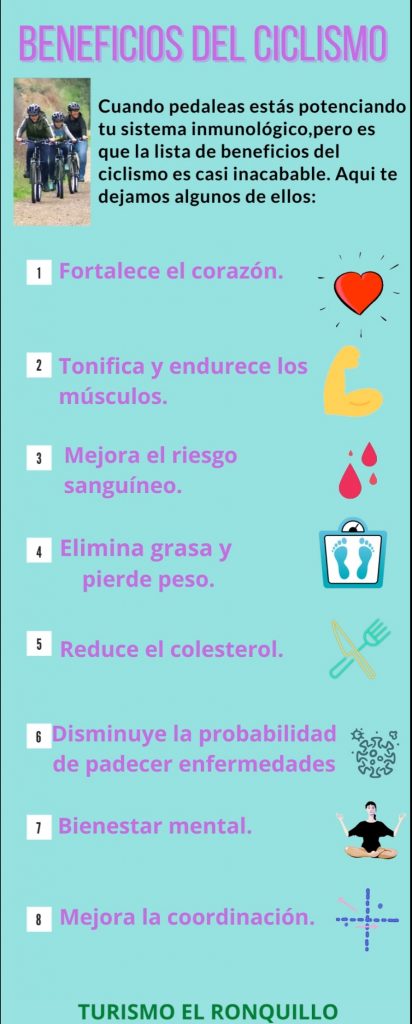 BENEFICIOS DEL CICLISMO | 4 febrero, 2021 | Noticias | No hay comentarios Entradas relacionadas Exposición «De Cala a San Juan de Aznalfarache pasando por El Ronquillo» No hay comentarios | Ene 25, 2022 NAVIDAD EN EL RONQUILLO No hay comentarios | Dic 13, 2021 RonquilleAndo Natural Ruta de Senderismo «El Pichi» No hay comentarios | Feb 3, 2022 APLAZADA LA GYMKHANA «LA HISTORIA DEL PUEBLO JAMÁS CONTADA» No hay comentarios | Oct 20, 2021